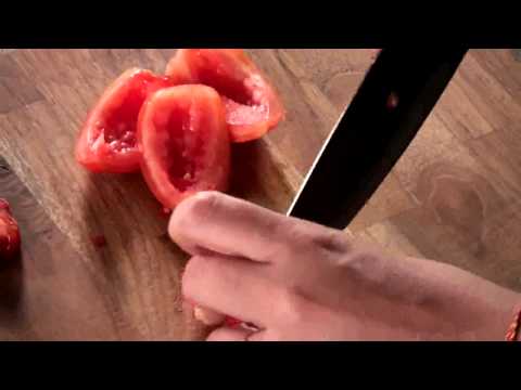 How to prepare tomatoes for salad | Sanjeev Kapoor Khazana - Roma Tomato Salad - Tips on how to perfectly cut tomatoes to use in a salad. http://www.facebook.com/ChefSanjeevKapoor https://twitter.com/sanjeevkapoor.
